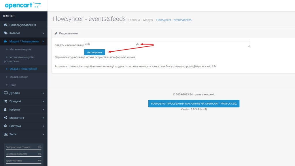 - Після успішного встановлення ви побачите відповідне повідомлення і далі потрібно відкрити налаштування модуля “синій олівець”: